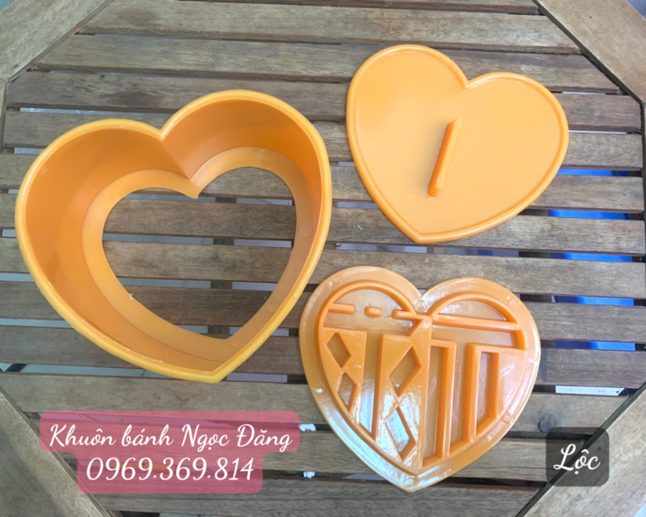 Khuôn Xôi Trái Tim 12cm kiểu chữ Hán in, hoa Hồng