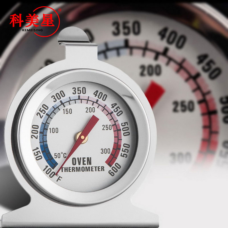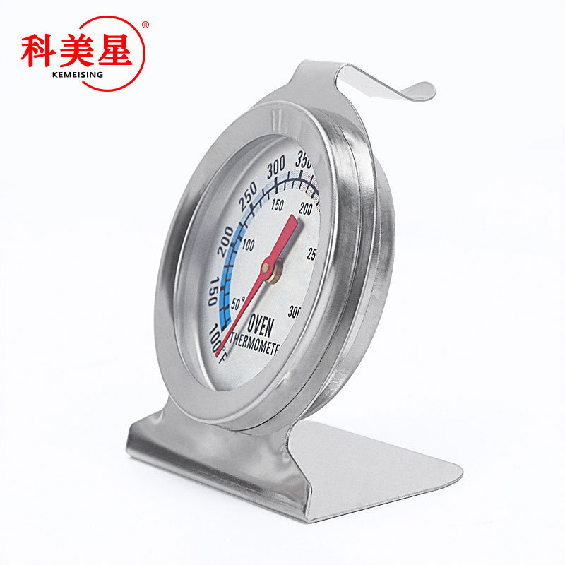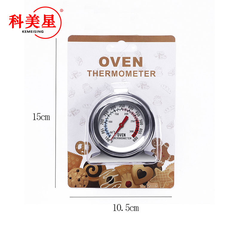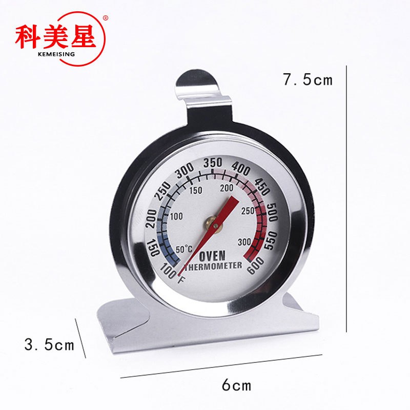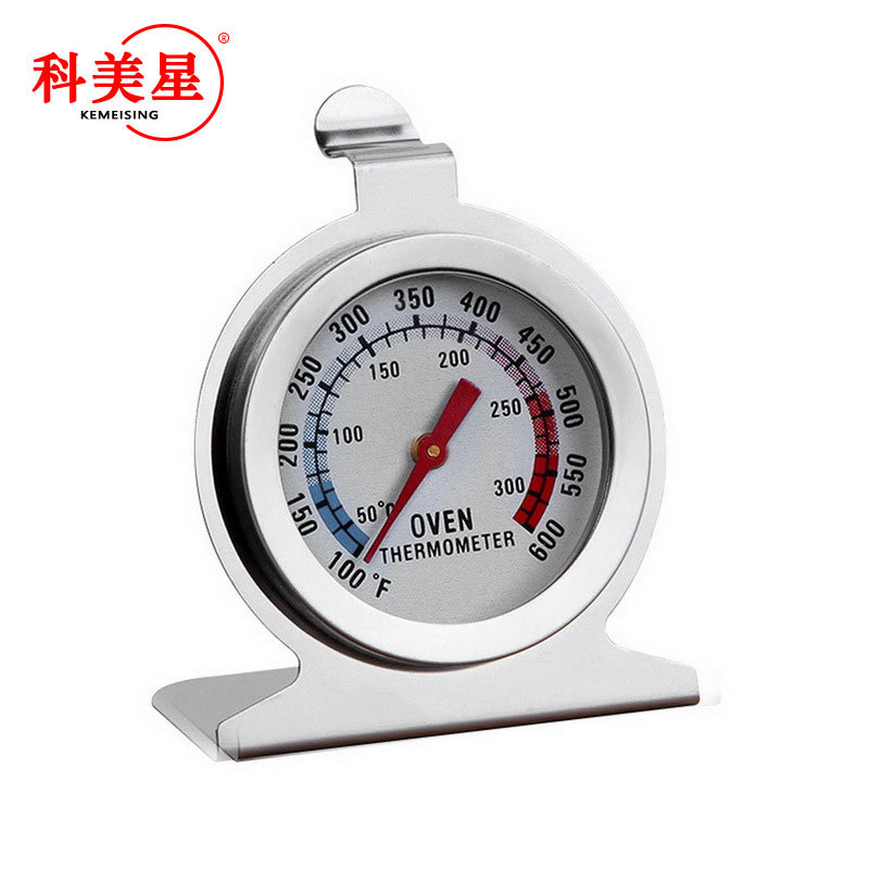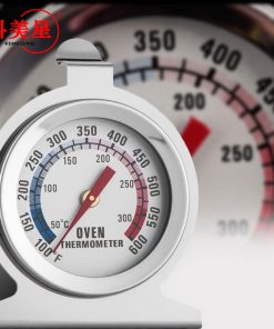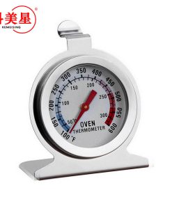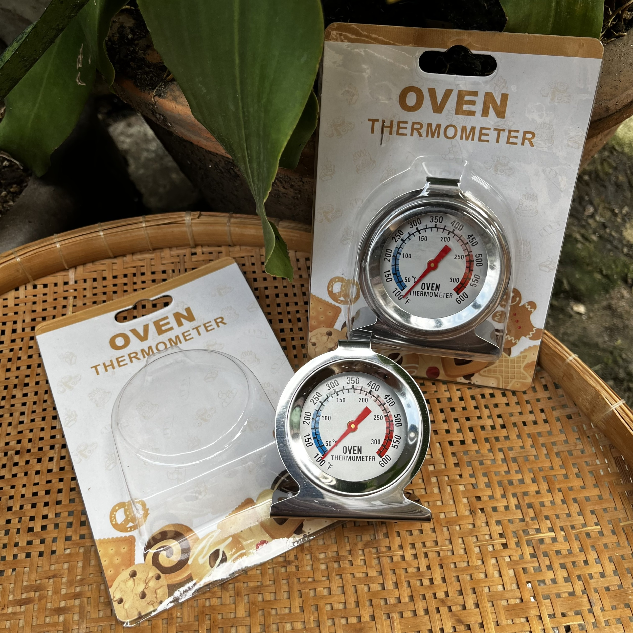 Nhiệt Kế được làm bằng Inox, Có thể treo hoặc để đứng bên trong lò nướng.